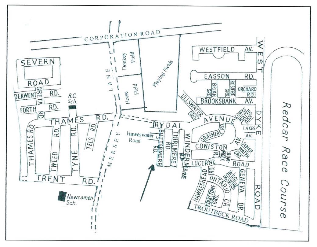 For some unknown reason there was always a certain animosity between the kids of the Lakes and Rivers estates. This was frequently acted out on Saturday mornings by “fights” between gangs of us kids throwing grass sods (tufts of grass with earth laden roots) and stones at one another in running skirmishes across the fields between the two estates. These would usually conclude with a charge into “enemy” territory sending the opposing “armies” fleeing into their houses (after all we were only nine or ten years old!). Victory was never very sweet for me (and defeat less so), because come Monday morning when everyone else from our “gang” went into Redcar to school, my school by then was in the heart of enemy territory and I either took a short cut to reduce the risk of being recognised, or I walked very close to grown-ups bringing their kids to or from school.