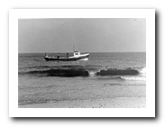 The last photograph is from about the same period. This time, the cat, the caterpillar tractor used to tow the lifeboat to and from the sea, became bogged down and had to be rescued by a chain of tractors belonging to local fishermen.